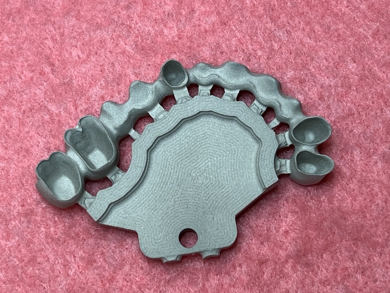 コバルトは、従来の鋳造法(鋳造欠陥=巣、凝固収縮による変形)では扱いづらい金属でしたが、シンターメタルは、CAD/CAMでdiskを削り専用ファーネスで真空下で焼結するので鋳巣が入らず、収縮もコントロールされているので変形が少ない。また、貴金属とは違い安価に安定した金額で提供する事が出来ます。
